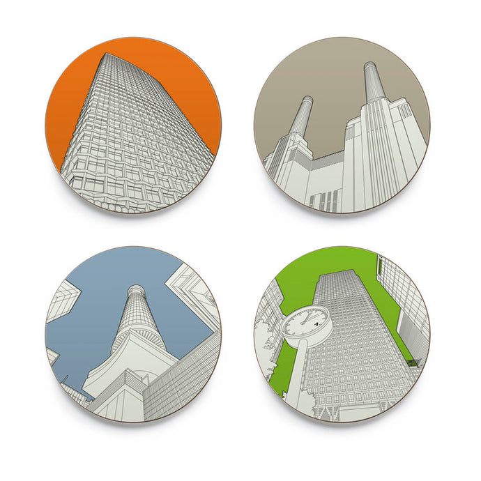 People Will Always Need Plates - Looking Up In London - a set of 4 coasters