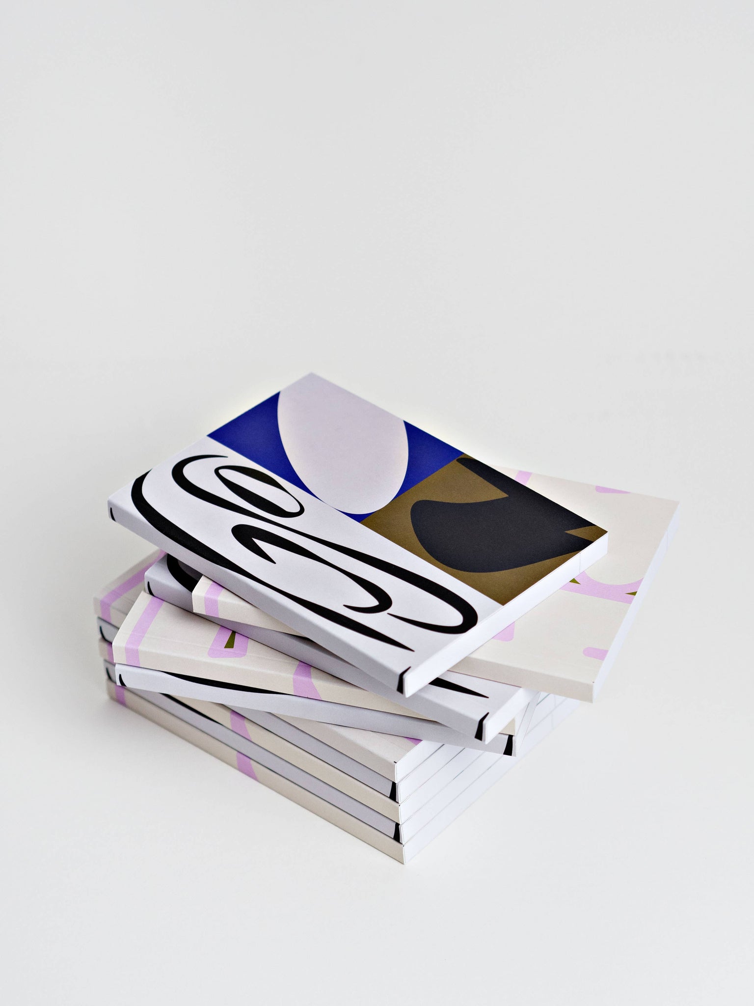 The corner of each page has triangles for folding over, or page numbers. The inside cover features a contrasting colour. It comes packed in a biodegradable bag with a belly band.