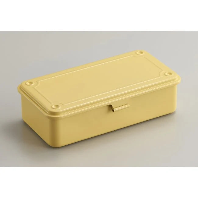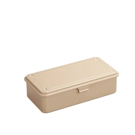 This beautifully made Steel Trunk Type Tool Box T190 in Beige by Toyo Steel is a Japanese classic. The top and bottom parts of the tool box are entirely made from a single piece of solid Japanese sheet metal, giving an incredibly sturdy yet lightweight frame to the design and being entirely without welding, lending a clean and slick aesthetic to each one. All of this resulting in a robust and secure tool box with rounded asymmetrical corners, the T190 edition is handle free with four rounded feet at the bottom to keep it in place. This Toyo Steel Tool Box comes packaged in a well designed Japanese cardboard box.