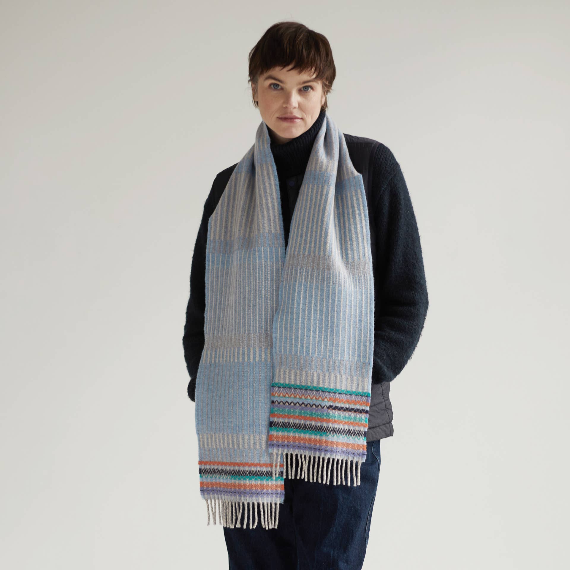 Stripe pattern light blue scarf - Bothy Periwinkle - Made in England by Wallace Sewell